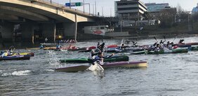 Nach viel Schnee beim ersten Wintercuprennen in Luzern empfing uns Basel wie gewohnt mit Sonnenschein und milden Temperaturen. Trotz guten Anmeldezahlen für das Rennen schlug die starke Grippewelle auch bei den Kanuten zu und es mussten sich viele Wettkämpferinnen und Wettkämpfer krankheitshalber wieder abmelden.