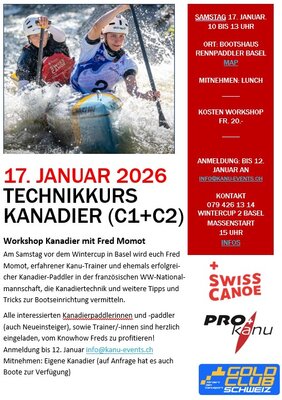 Am Samstag vor dem Wintercup in Basel wird euch Fred Momot, erfahrener Kanu-Trainer und ehemals erfolgreicher Kanadier-Paddler in der französischen WW-Nationalmannschaft, die Kanadiertechnik und weitere Tipps und Tricks zur Bootseinrichtung vermitteln.