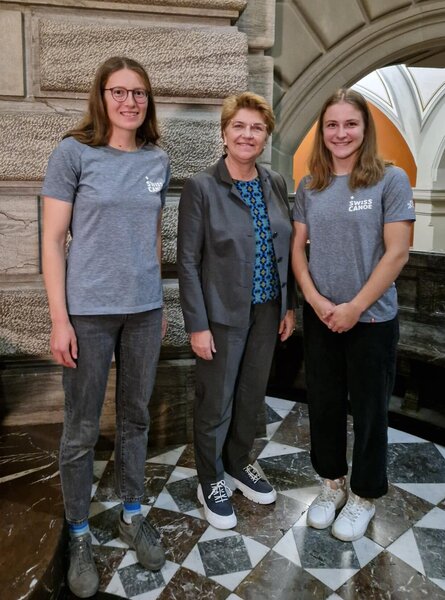 Mittendrin auch Mona Clavadetscher und Hannah Müller! Was für eine Ehre, dass sich sogar Bundespräsidentin Viola Amherd Zeit für ein Bild genommen hat.