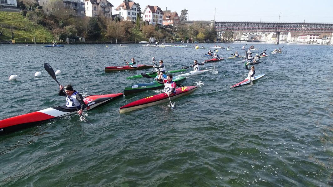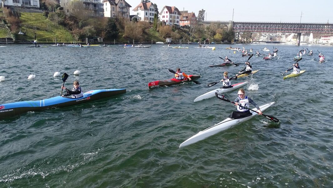 Bei Sonnenschein und warmem Wetter machte es den Wettkämpfern und auch den zahlreichen Zuschauer beim Bootshaus der Kanuklubs Schaffhausen sichtlich Spass. Wie immer in den letzten Jahren wurde zusammen mit dem dritten Rennen des Wintercups auch die Langstrecken-SM Regatta ausgetragen. Um 11 Uhr startete das Wintercuprennen und die LSM im Einer-Kajak. Auf dem 6.5 km langen Rundkurs musste die Zieldurchfahrt dreimal befahren werden (ausgenommen die U14, die nur die kurze Distanz zu befahren hatten).