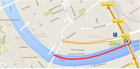 Die Strecke auf dem Rhein misst 5km und weist bei Normalwasserstand eine moderate Strömung auf (WW I). Das Rennen findet entlang des Kleinbasler Ufers zwischen dem Bootshaus der Rennpaddler und der Wettsteinbrücke statt. Es werden zwei Runden gefahren.
