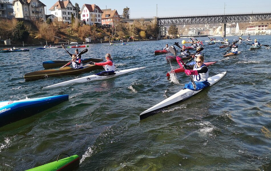 Wir starten rheinabwärts im Bereich der Schiffswerft. Die genaue Streckenführung wird an der Wettkampfbesprechung den Clubveranwortlichen erklärt und muss wegen der Schifffahrt und den verankerten Booten strikte beachtet werden. Entlang dem Ufer sind Boote an Pfählen verankert. Es muss ausserhalb der Boote und Pfähle gefahren werden. Eine Nichtbeachtung hat die Disqualifikation zur Folge.